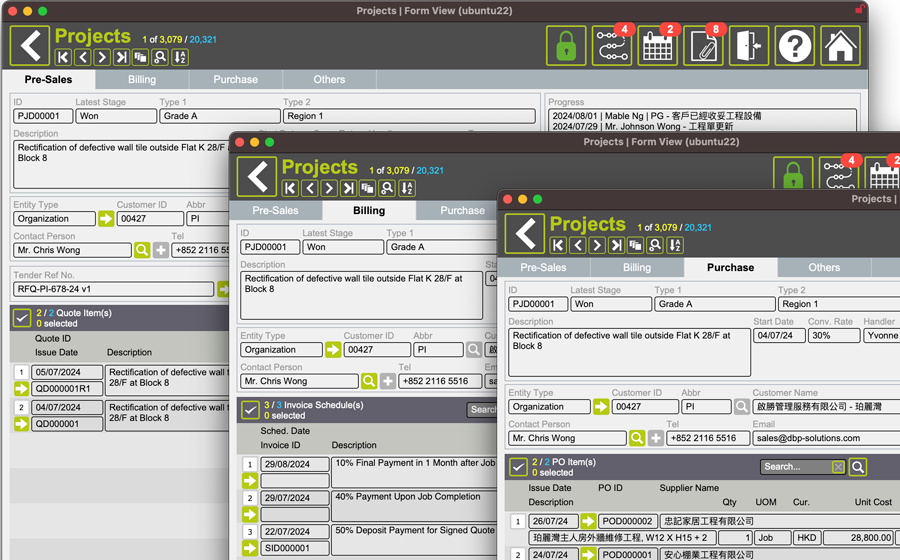 This solution is specifically designed for minor works contractors in Hong Kong who frequently bid on projects from property management companies. It significantly enhances the automation of various operations.