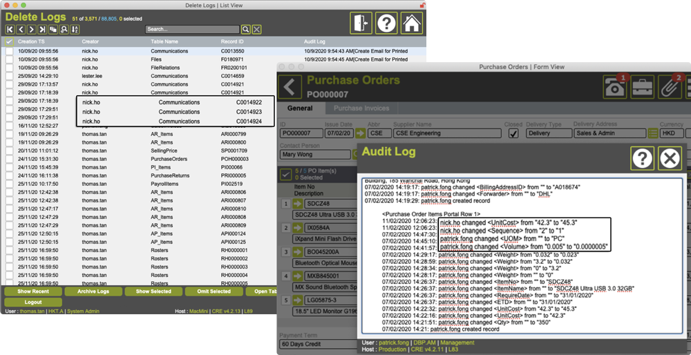 Data security is of paramount importance to your business. That's why DBP system tracks field data changes, record creation, deletion, printing, exporting and server running scripts for audit purposes